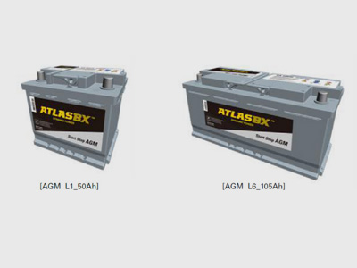 对于启停车适用的启动电池和xEV辅助电池,ATLASBX AGM L1 (50Ah)和AGM L6电池(105Ah)是非常好的选择。 这种电池已于2018年3月开始生产。